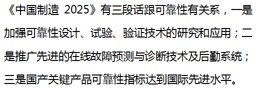 在许多企业,运行维护费用能占到利润的1/4,企业家有足够的动力推动研发部门去搞可靠性。国内非军工企业,要做可靠性的起点都是基于这样的倒逼机制。